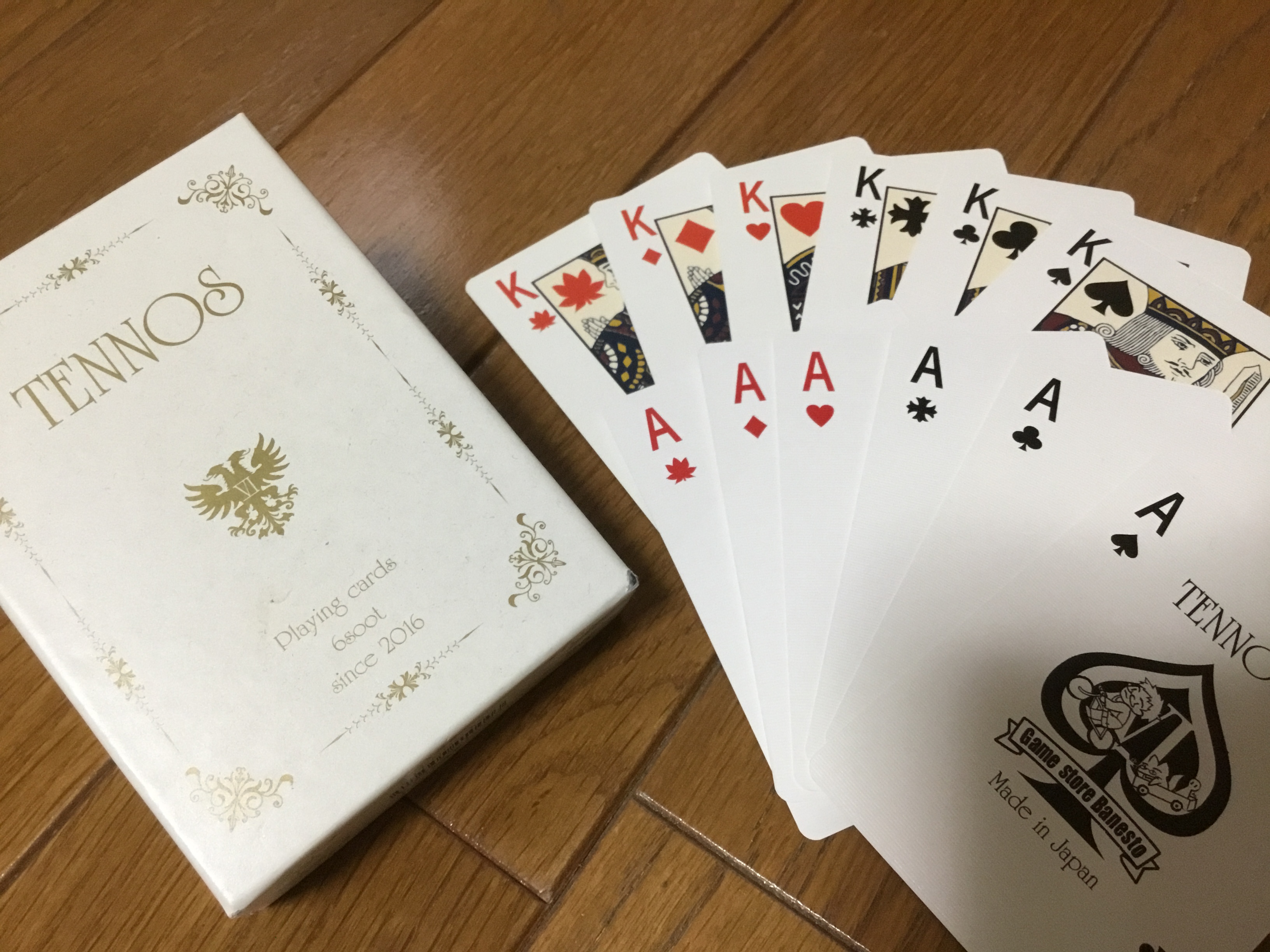 “TENNOS”は通常のトランプのスート「スペード」「ハート」「ダイア」「クローバ」に加えて「クロス」「リーフ」の2種類のスートが追加されたトランプです。